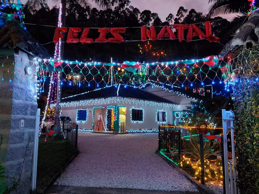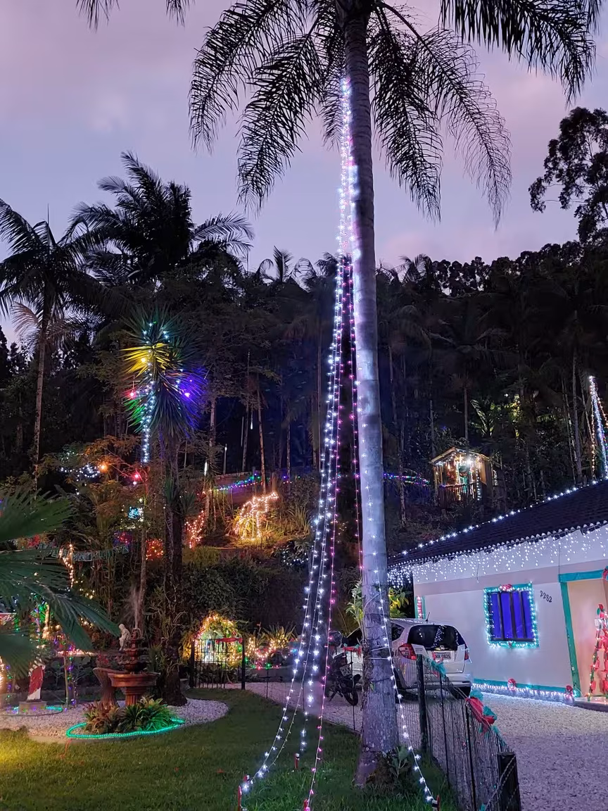 O espaço enfeitado está localizado em frente à rodovia SC-410, no bairro Morro da Onça, e virou um ponto de atração no município. Para quem não conhece o acesso e planeja uma visita, disponibilizamos a opção do GPS indicado a seguir: Acesso GPS à decoração de Natal