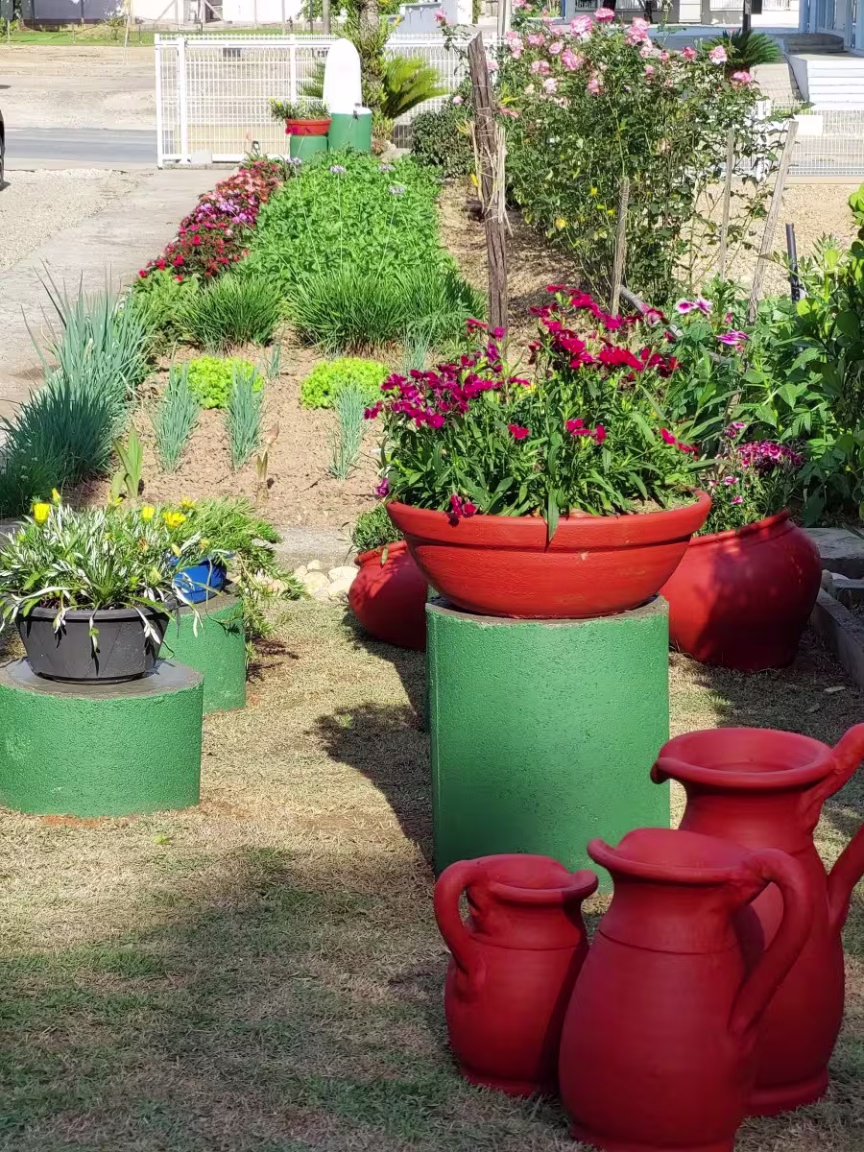 Colorido e cheio de flores, o quintal da vó Lela vem se tornando uma atração no bairro. São muitas as pessoas que passam em frente à residência e param para fotografar o espaço tão bem cuidado por ela.
