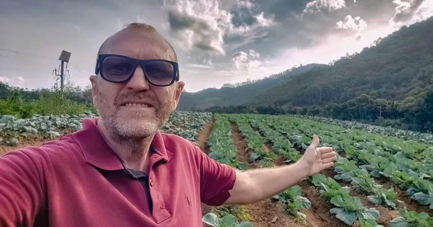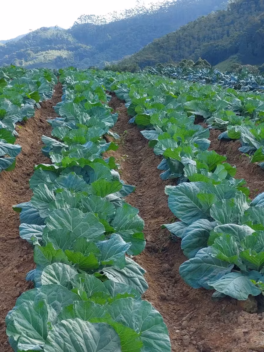 Ademir e Beatriz são casados e contam com a ajuda do irmão de Ademir, Valdecir, na plantação de hortaliças. Durante nossa visita à propriedade, registramos imagens impressionantes do entorno. Especialmente nesta época de abril, quando a família está no início do plantio de verduras como repolho, couve-flor, brócolis, alface, cebolinha, salsinha, alho-poró e outras.