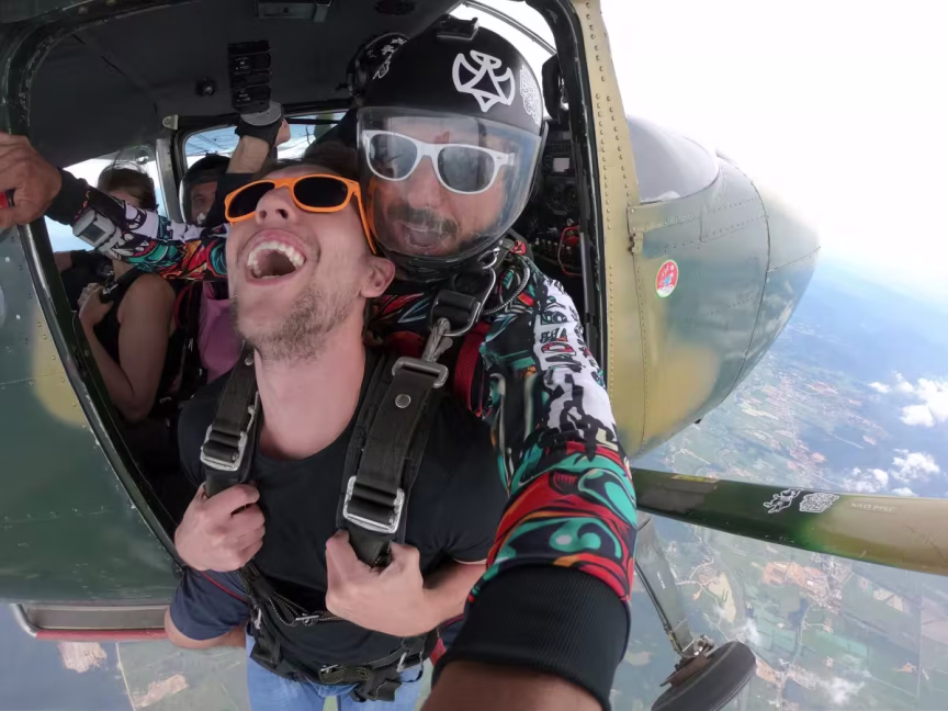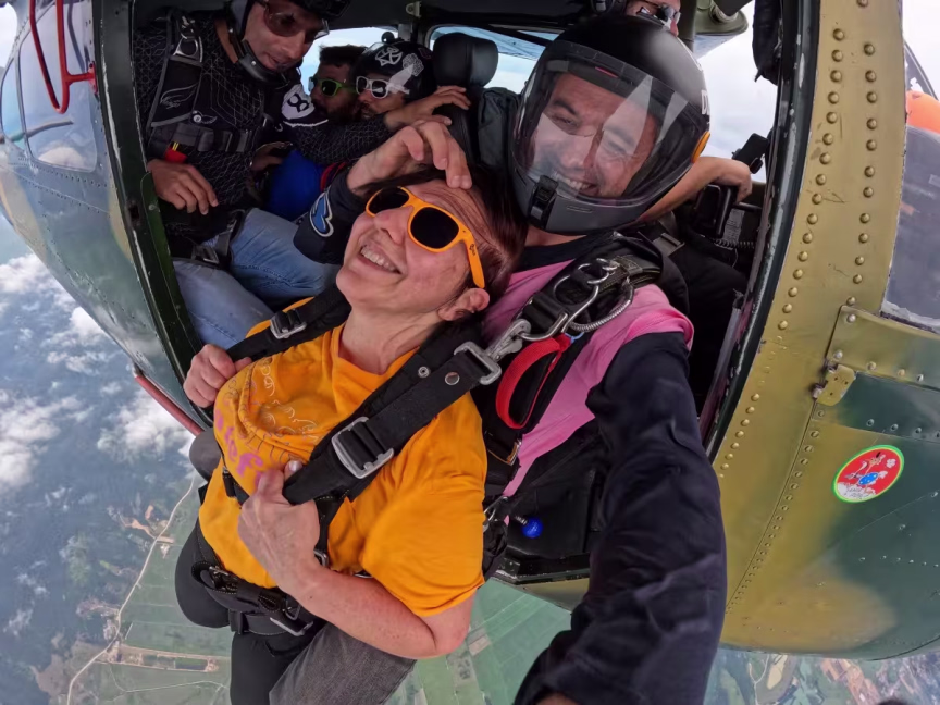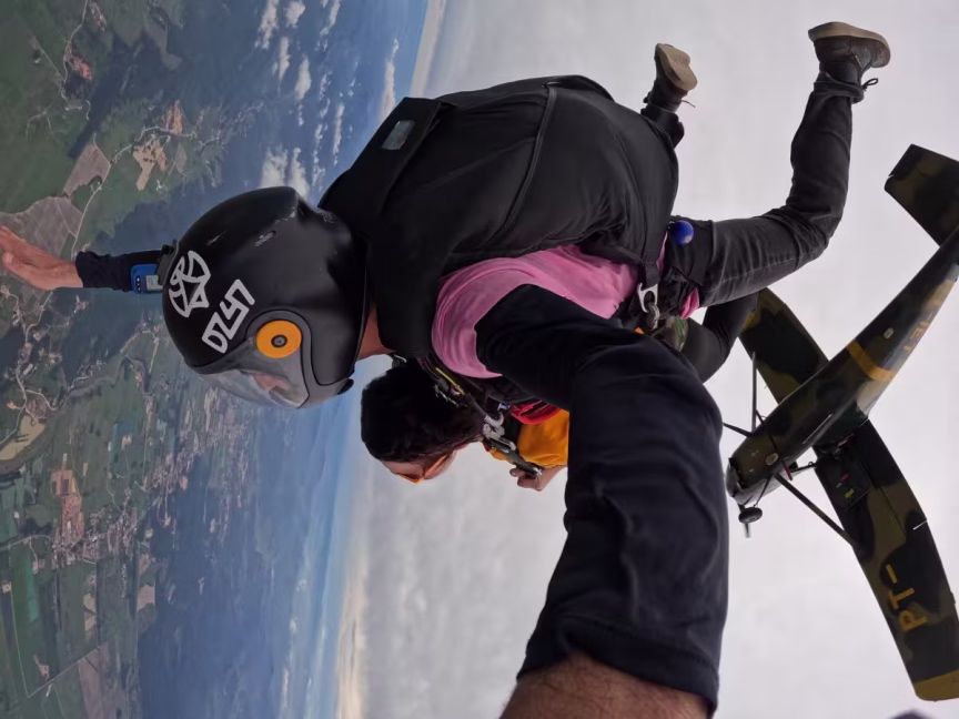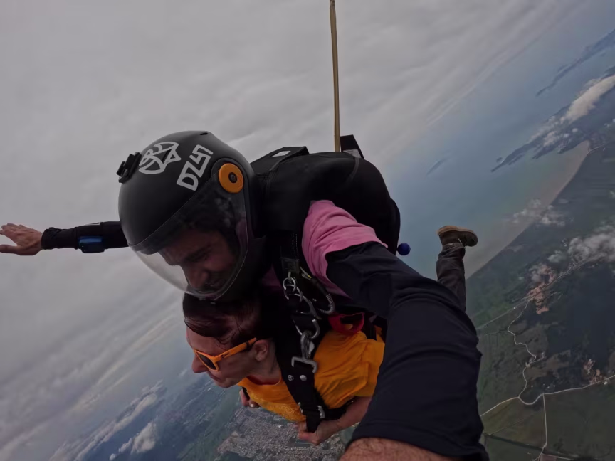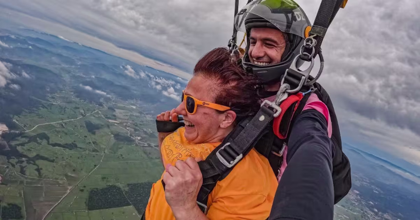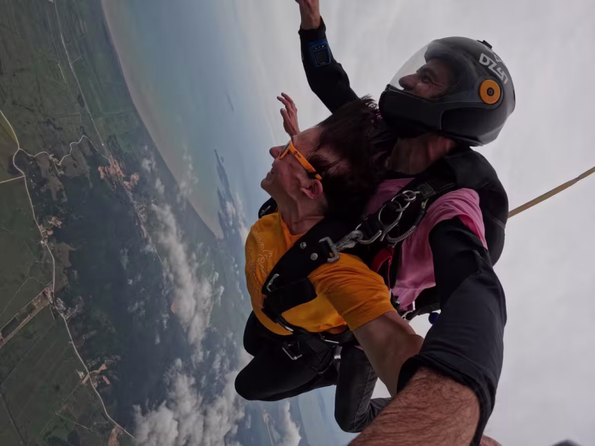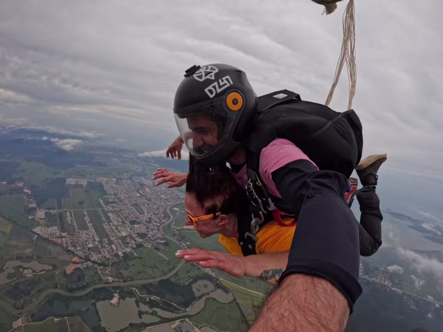 VÍDEO – Veja a emoção de brusquenses em salto de paraquedas