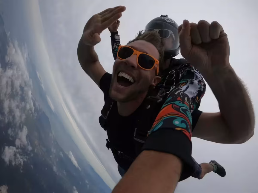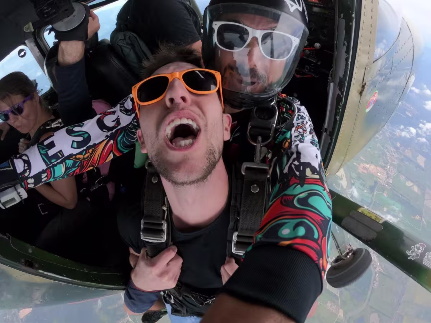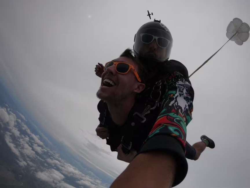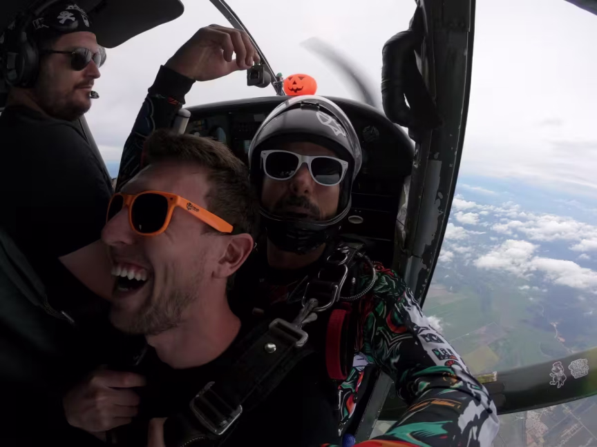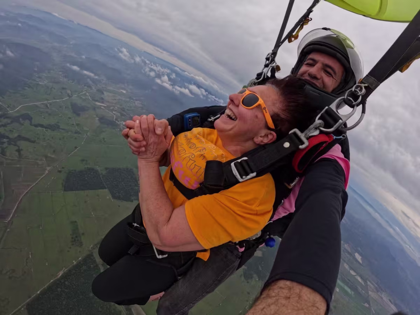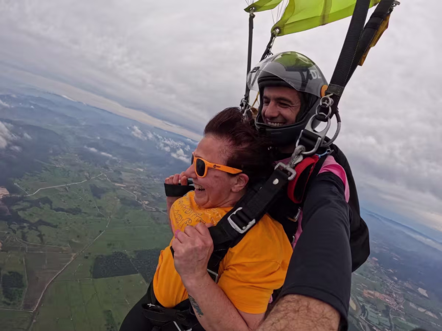 VÍDEO – Veja a emoção de brusquenses em salto de paraquedas