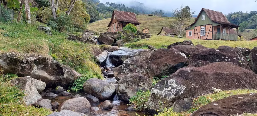 Pois essa terra existe e fica no município catarinense de Pomerode, mais precisamente no local denominado, Paraíso Enxaimel Mundo Antigo.