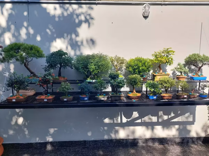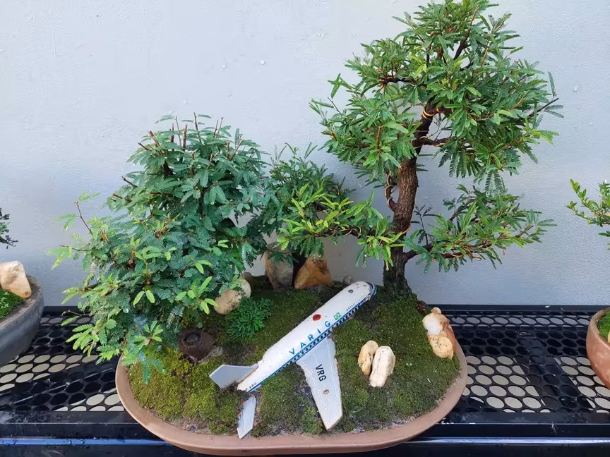 "Existem várias etapas; são anos de trabalho. Sempre é necessário ter cuidado com os bonsais, pois eles precisam de uma atenção especial e diária. Geralmente, tiro uns minutinhos durante o dia para regá-los e ver se está tudo certo, relata".