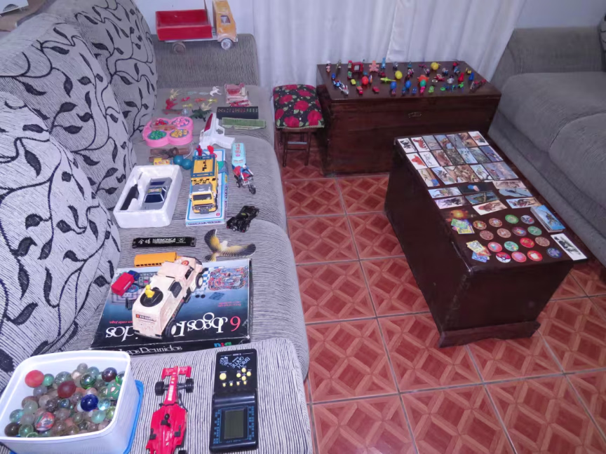 "Se desse eu ficava o dia inteiro brincando. Foi uma infância boa, gostosa. Eu viajava no tempo, no mundo, falava sozinho, sem preocupação. A única coisa que se tinha pra fazer era brincar", destaca o auxiliar de expedição, que diz que não gosta que ninguém mexa no baú dos seus brinquedos.
