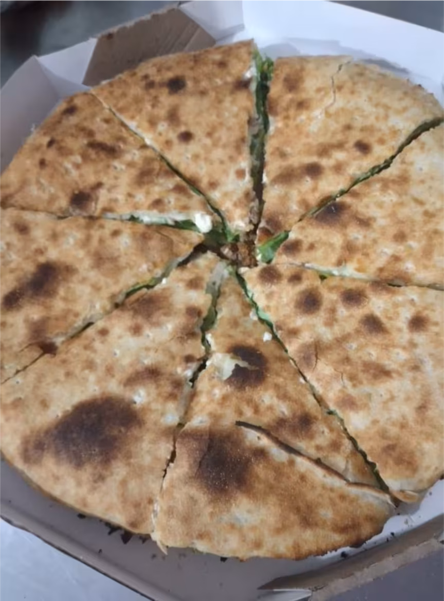 O beirute da Dom Mazzene é um lanche fechado, feito com massa de pizza, bem recheado, e serve até 3 pessoas.