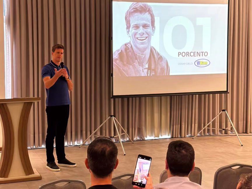 Num primeiro momento do seminário o Gestor Dalmir Marques e o Gestor Carlos Kohler apresentaram um breve relato do Grupo WDCom, bem como o propósito de negócio da WDCom e seus mais novos projetos e valores que os diferenciam dos demais, tornando-se referência no segmento. Já no momento mais aguardado e esperado do seminário, sob o lema “101% – Em busca do extraordinário”, César Cielo compartilhou com os convidados as lições que o tornaram o homem mais rápido do mundo na natação. Campeão olímpico, tricampeão mundial e membro do Hall da Fama da Natação Internacional, Cielo trouxe reflexões sobre superação, persistência, foco e busca pela excelência, princípios e convicções que também guiam a trajetória da WDCom.
