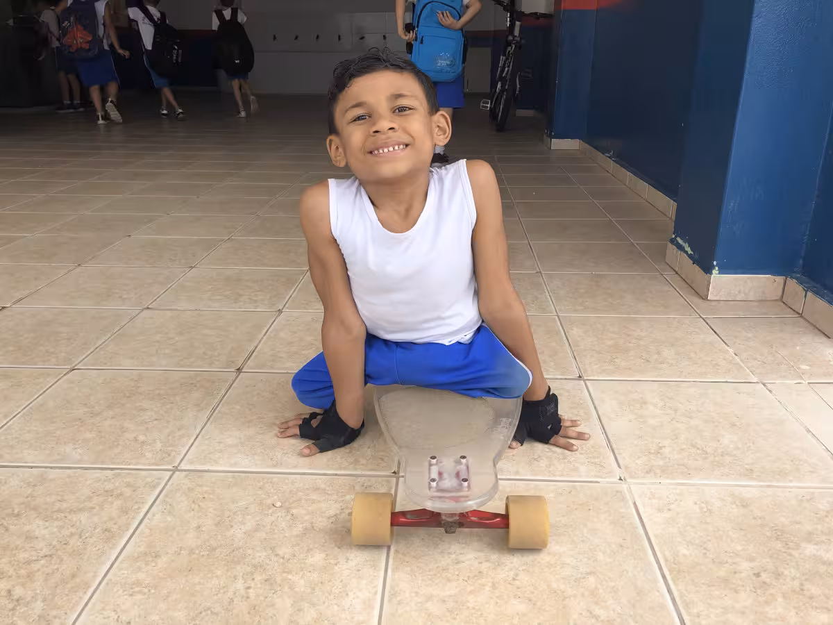 Com perninhas atrofiadas, batistense de 7 anos usa skate para realizar tarefas com independência