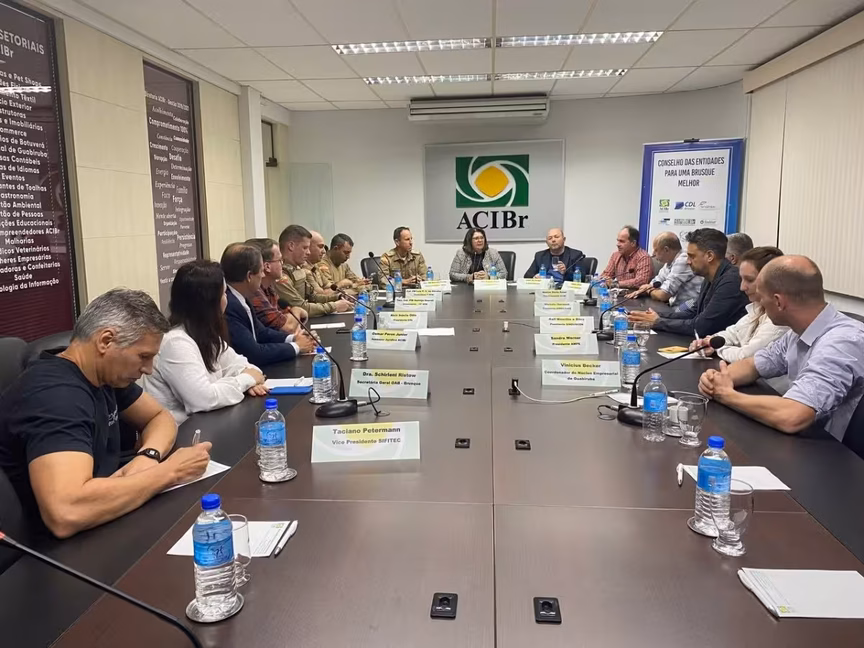 A visita teve como objetivo estreitar os laços com as entidades da região. A reunião contou com a presença dos prefeitos Ari Vequi, de Brusque, e Valmir Zirke, de Guabiruba, além de autoridades empresariais e de segurança da região.
