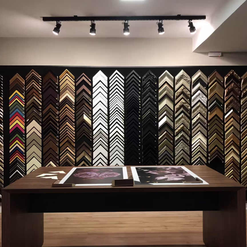 Na loja também é possível encontrar uma grande variedade de molduras, são mais de 500 opções de escolha, entre elas, molduras folheadas a ouro e prata. A Composé é loja exclusiva Moldurarte, a maior fábrica de molduras da América Latina.