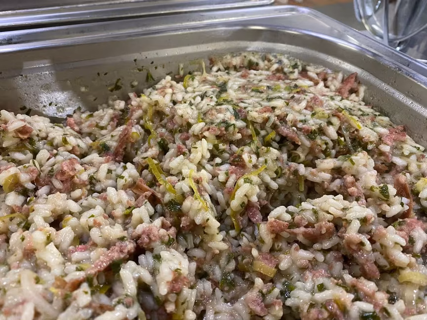 Risoto de Linguiça com alho poró, feito por Lucinha Eccher