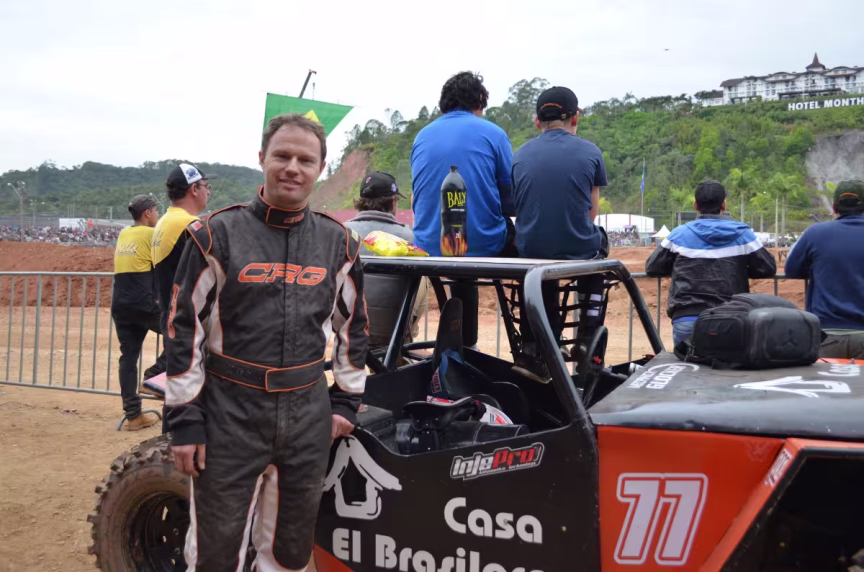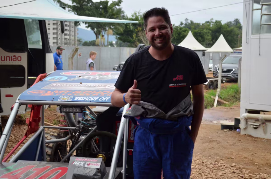 O piloto começou a andar de gaiola há apenas um ano, mas desde criança é envolvido com esportes a motor, como kart e arrancada. Ele diz que sempre foi ligado ao automobilismo, e agora, correndo na Fenajeep, conta com o apoio de amigos e da família.