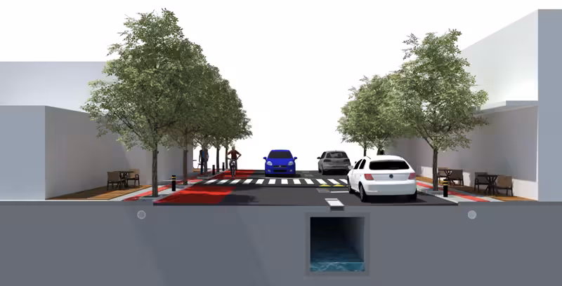 Com mais espaço nas calçadas, a ideia é que o espaço seja usado para eventuais vagas de estacionamento, mas também para a arborização. Segundo Carminatti, a presença de árvores é um ponto importante para mudar a paisagem.