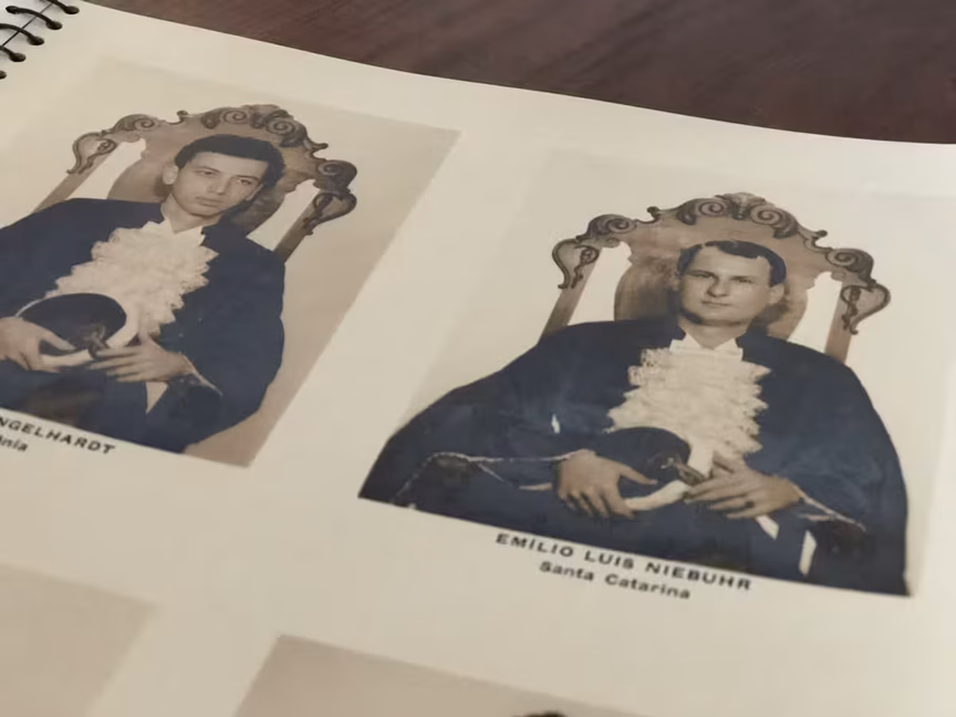 “Ele tem muito orgulho de ter estudado lá, na Praia Vermelha. Meu primo, que é da idade dos meus filhos, teve aula no mesmo lugar que o meu pai estudou. A mãe dele e toda a família ficaram emocionadas, porque meu pai é referência para todos”, conta Eugênia Regina Schloesser Niebuhr Loos, a Geninha, filha de Emílio.