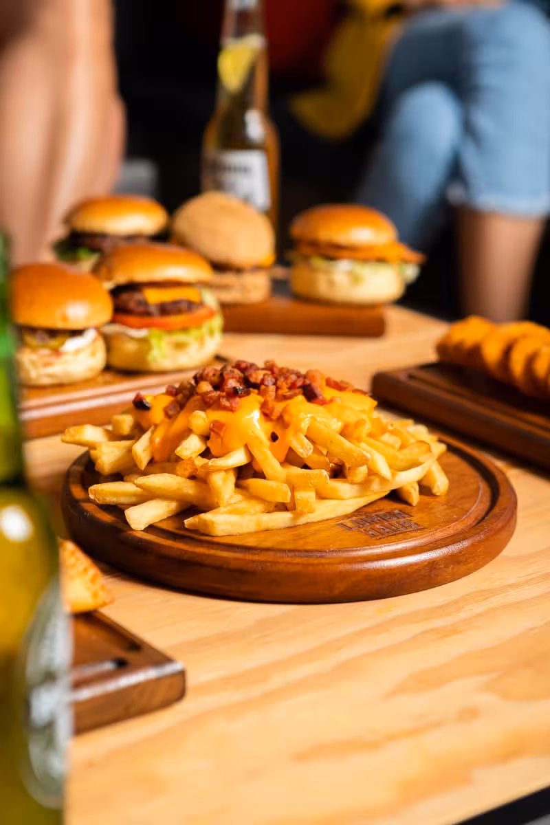 Lomba Burguer (pão brioche, hambúrguer, cheddar, alface americana, tomate e maionese da casa); Lomba Chicken (pão brioche, peito de frango empanado, cheddar, alface americana e maionese com pepino); Lomba Ozzie (pão australiano, hambúrguer, cheddar cremoso e bacon); Lomba Classic (pão brioche, hambúrguer, cheddar, cebola roxa, picles e maionese da casa); Lomba Bacon (pão brioche, hambúrguer, cheddar, alface americana, tomate, bacon e maionese da casa); Hambúrguer do Gazola (pão brioche, hambúrguer, molho gorgonzola e rúcula).