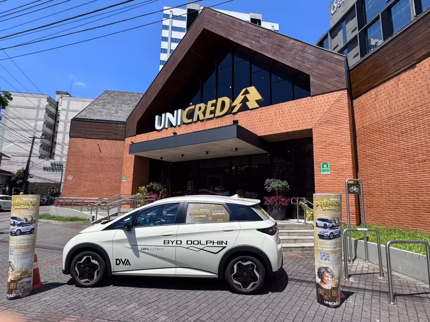 A Promoção Festival de Prêmios da Unicred reforça o cooperativismo ao oferecer soluções financeiras e incentivar a sustentabilidade. O cooperado Fábio Zordan Fraracio, de Blumenau, foi contemplado com um BYD Dolphin, carro 100% elétrico que simboliza a inovação e a mobilidade sustentável. A campanha, alinhada às práticas ESG da cooperativa, distribuiu mais de R$ 1,5 milhão em prêmios ao longo do último ano. Com essa iniciativa, a Unicred Vale fortalece seu compromisso com os cooperados e com um futuro mais sustentável.