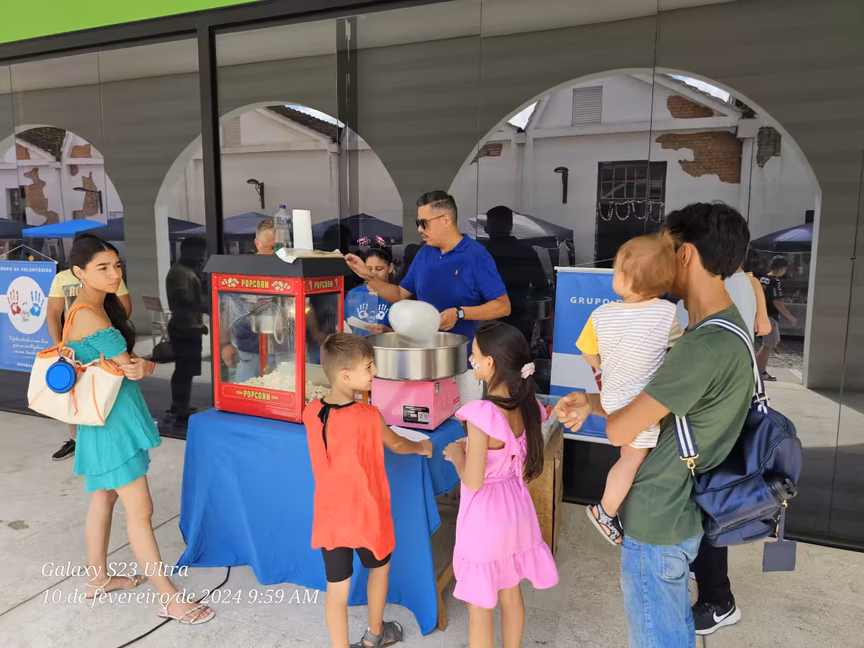 Além disso, a generosidade se expressa através da distribuição gratuita de pipoca e algodão doce, trazendo não apenas deleites ao paladar, mas também sorrisos radiantes aos rostos das crianças, que exploram animadas os espaços especialmente dedicados a elas.