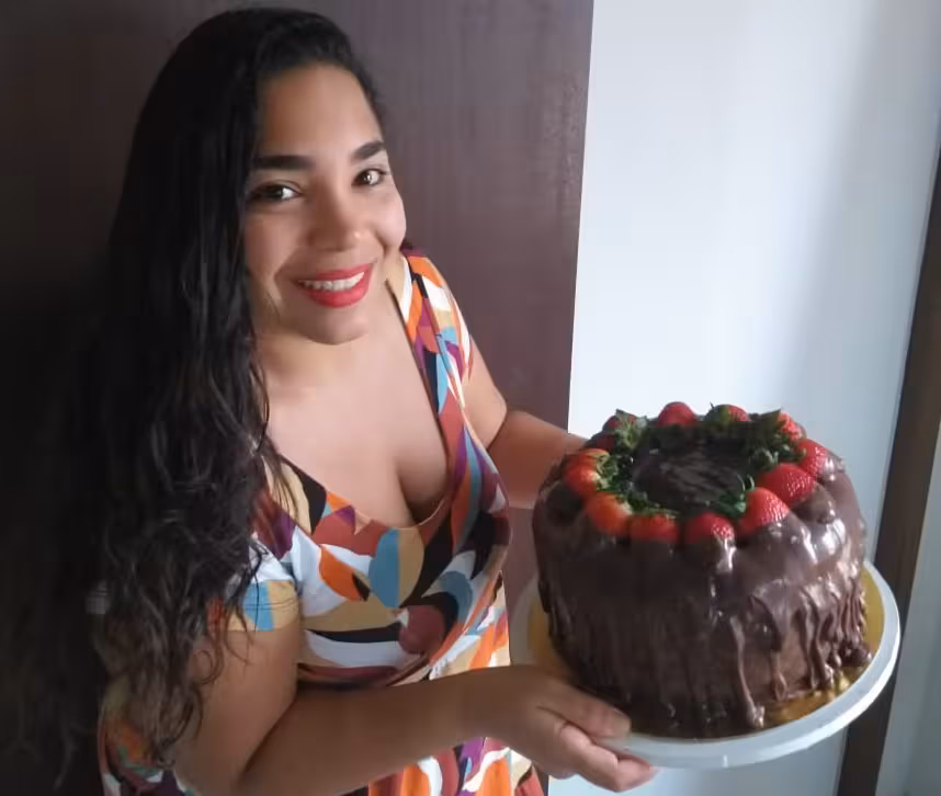 Andressa Fonseca Rezende Fernandes dos Santos, 33, mora em Brusque desde 2016. Ela veio para o município a convite de uma empresa em que trabalhava no Rio de Janeiro. No entanto, a situação financeira apertou e em março deste ano ela começou a fazer bolos para gerar uma renda extra.