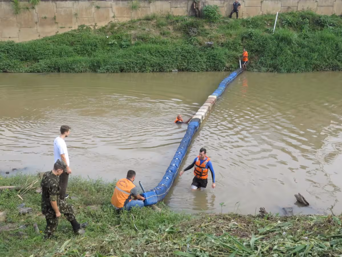 Ele explica que o órgão estuda dividir a ecobarreira em três partes e colocá-las em trechos com correnteza mais fraca do rio Itajaí-Mirim ou então em ribeirões da cidade.