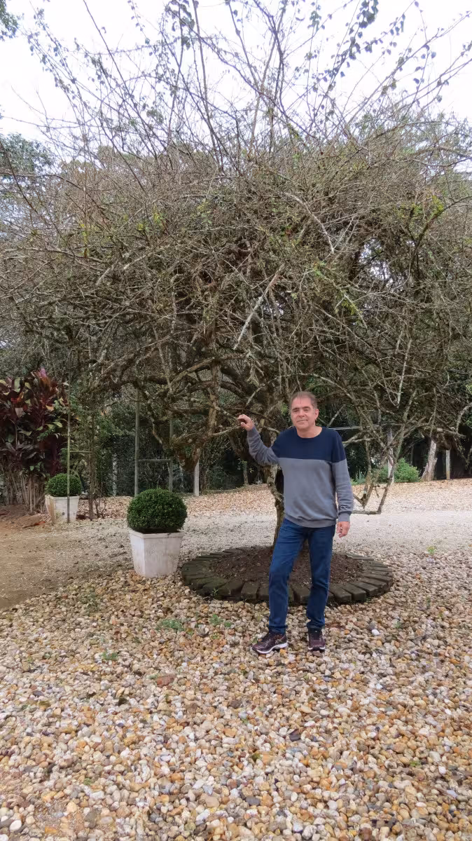 “Se você ver agora ela não tem peso nenhum, ela não tem folha, mas depois que ela começa a florir, fica muito pesada e a água acumula nas flores”, explica. No entanto, o empresário afirma que nunca cogitou a hipótese de tirar as árvores.