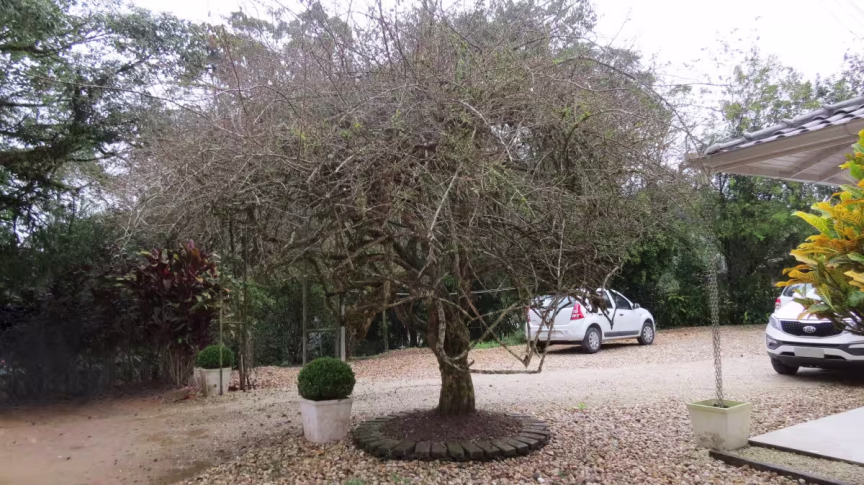 “Isso faz uns 7 anos, ela estava com uma parte das raízes de fora e eu consegui puxar de volta, recortei para aliviar o peso dela e ela sobreviveu”, revela.