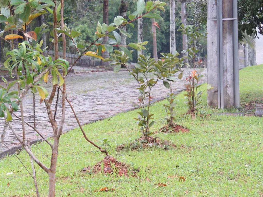 Ela reparou que tinha árvores frutíferas nos canteiros, achou bonito e resolveu copiar a ideia. Além dela, há outros moradores no bairro que também plantam as árvores nestes espaços.