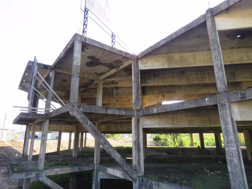 Quem passa pela rodovia Antônio Heil, nos fundos do Fort Atacadista, vê um edifício antigo abandonado. O prédio está nessa situação há anos e assim deve permanecer por tempo indeterminado devido a uma disputa judicial.