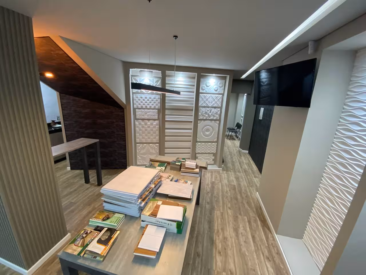 “Hoje a gente aposta em um produto diferenciado, como vinílico para teto e chão. Tem o gesso convencional e acartonado. O cliente às vezes não conhece esses produtos e o showroom mostra como eles realmente são”, conta.