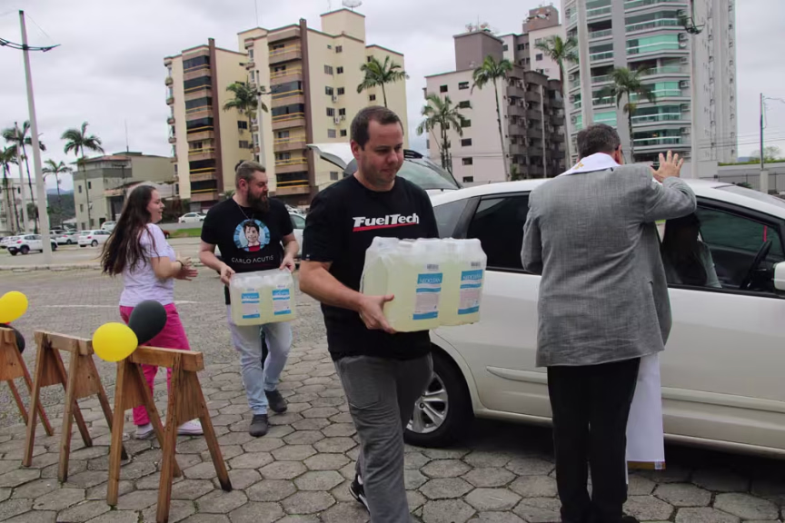 O Drive Thru do Bem teve início durante a pandemia da Covid-19 e com a grande adesão da população, a paróquia decidiu manter a ação.