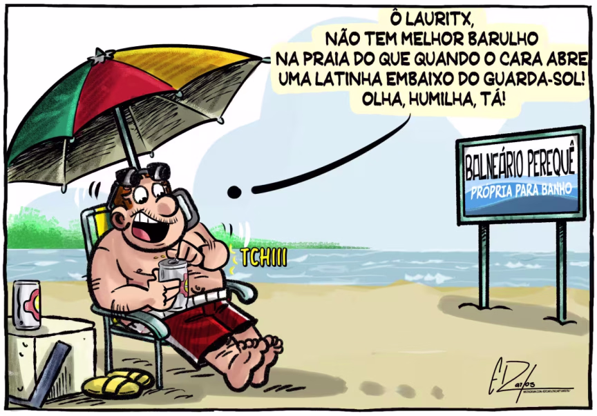 Ô Lauritx, qual é o melhor som da praia? Armandinho? Bob Marley? Baitaca? Milionário & José Rico? MC Kevinho? Latino? Olha, confesso que eu não sei, até porque gosto musical é igual aquela palavra que começa com C... o CPF, que cada um tem o seu. Mas me arrisco a dizer que o melhor som da praia é o barulho do mar. Então, tomara que esse ano no nosso Balneário Perequê o prefeito proíba a utilização de caixas de som de qualquer espécie pela praia, assim como já é em Balneário Camboriú, Itapema e em outras praias onde a civilização é maioria. Nossos tímpanos agradecem!