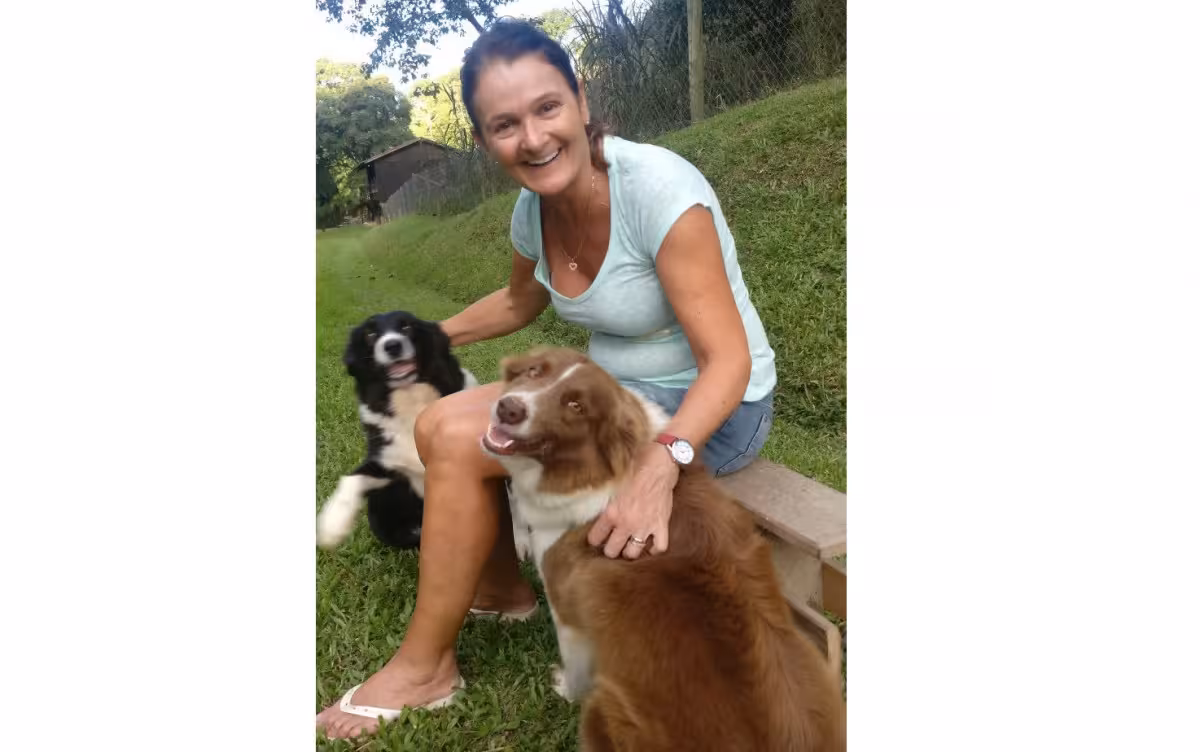 Tutora: Eloise Zen Kohler Idade: 52 anos Profissão: Comerciante Bairro: Centro Pets: Jullie (preta) e Laila (marrom) Idade: 4 anos Raça: Border Collie A Jullie foi um presente dos filhos da Eloise, pois o pinscher Toby havia falecido e ela estava triste. Depois chegou a Laila, que foi um presente de uma amiga. As duas cachorrinhas moram no sítio da família em Guabiruba, e a família mora no Centro. A tutora faz de tudo para ver as pets todos os dias e nos fins de semana, ela e o esposo ficam no sítio em tempo integral. Elas são muito arteiras e felizes, adoram brincar e dormir juntas. O caseiro do sítio também cuida das pets é muito amoroso com elas. A Laila é muito apegada a Eloise, e a Jullie é apegada ao Aldo, esposo da tutora.
