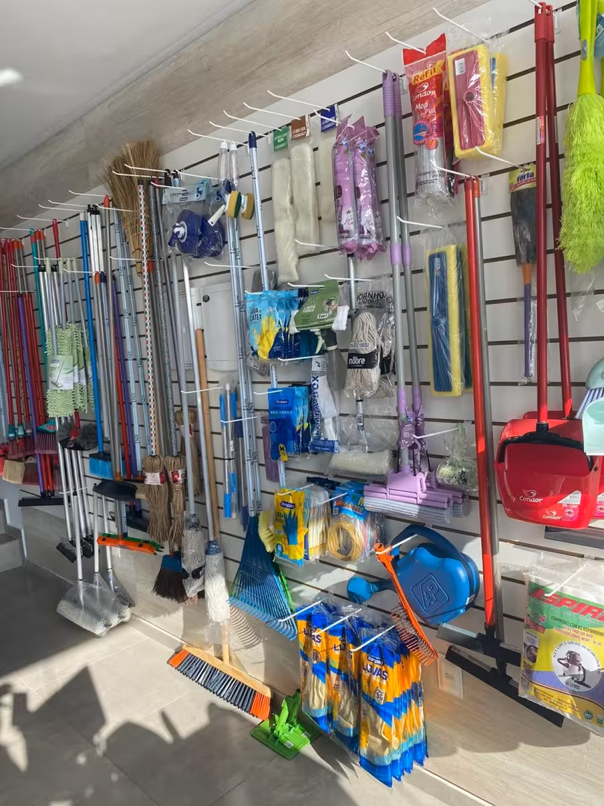 Na loja, os clientes encontram tudo o que precisam em material de limpeza, desde químicos até esponjas e panos; materiais descartáveis, desde marmitas até copos, garfos e facas; papel toalha e papel higiênico; e tudo que envolve materiais de escritório, como grampeador, caneta, lápis, e muito mais.
