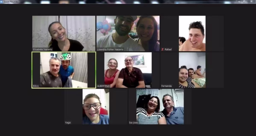 Lizandra Puhler Nazário, 28 anos, e Thiago Gomes Nazário, 30, queriam fazer um chá de revelação, mas devido à pandemia do coronavírus não puderam organizar um evento presencial, então surgiu a ideia de realizar o momento online. "A gente sabe que tem que respeitar o isolamento social, então a opção que a gente teve foi de fazer pelo Zoom com a família", conta Thiago.