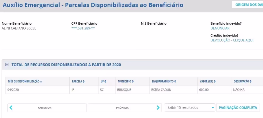De acordo com informações do governo federal, a empresária Alini Caetano Eccel, de Brusque, recebeu R$ 600 do Auxílio Emergencial. Situação foi denunciada ao jornal O Município na última sexta-feira, 10, quando foi apurado o nome da empresária e constatou que o dinheiro foi recebido em abril.