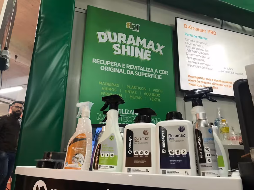 A tecnologia é desenvolvida em parceria com a empresa Nano4you. Com um produto inovador de limpeza, revitalização e proteção, a Fiel fechou cerca de R$ 3 milhões em negócios em quatro dias de feira, conta o proprietário Leandro Presença.