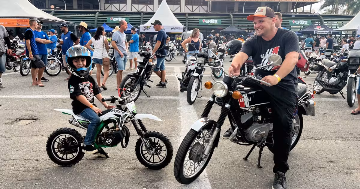 Foi essa paixão que levou o pai, Giovani Zarpelon, e o filho de cinco anos, Thomas Zarpelon, a saírem de Xangri-lá, cidade localizada no Rio Grande do Sul, para participarem do evento em Brusque. E, claro, cada um veio com a sua moto.