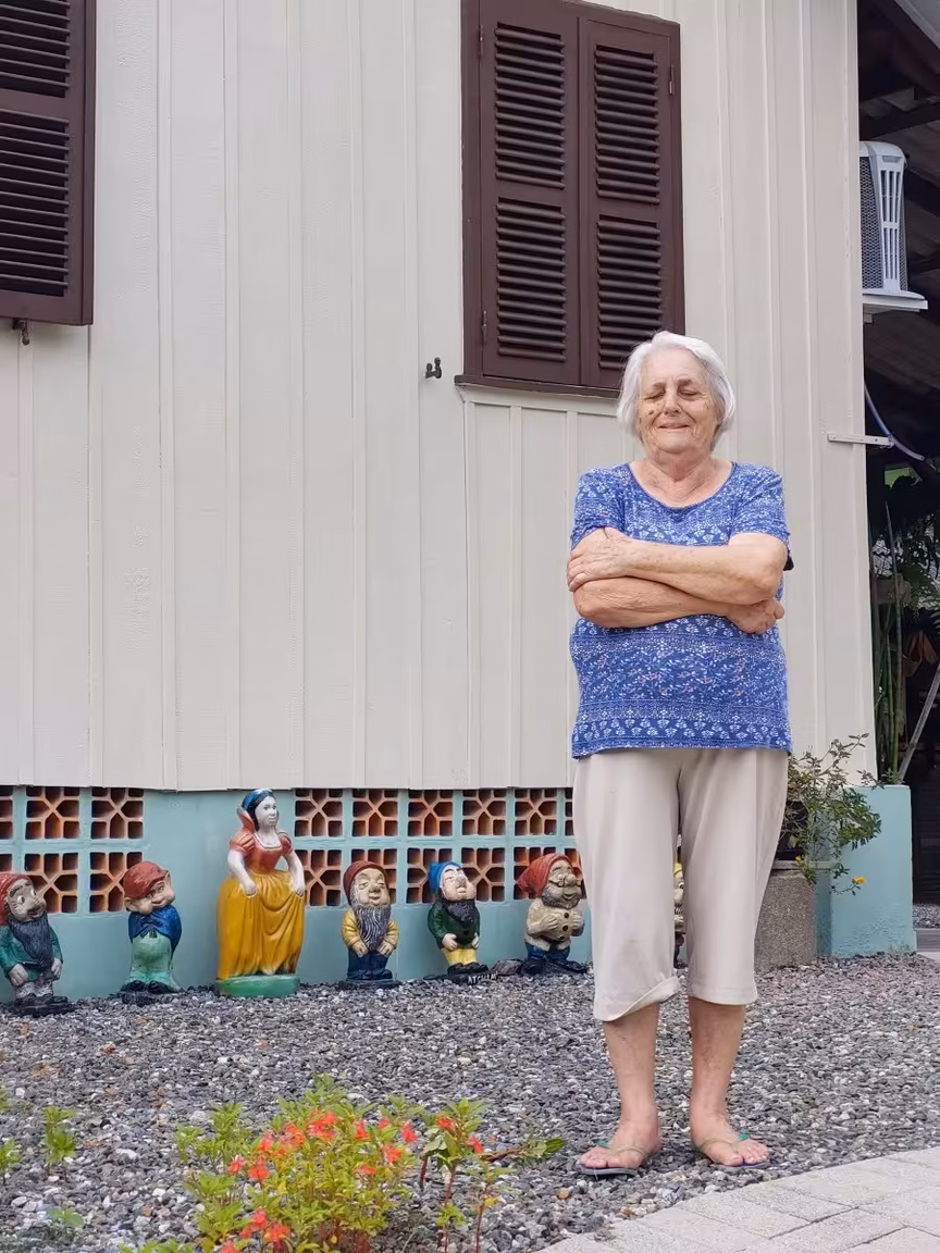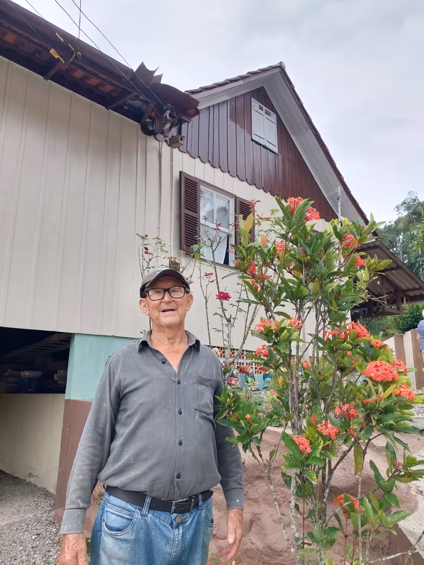 Aos 85 anos de idade, o venerável Osmar Imhof, mestre pintor aposentado, empresta todo o seu cuidado à casa e ao jardim, contando com a colaboração de sua esposa, dona Ondina, de 83 anos, onde cada detalhe é meticulosamente apreciado e aprimorado.
