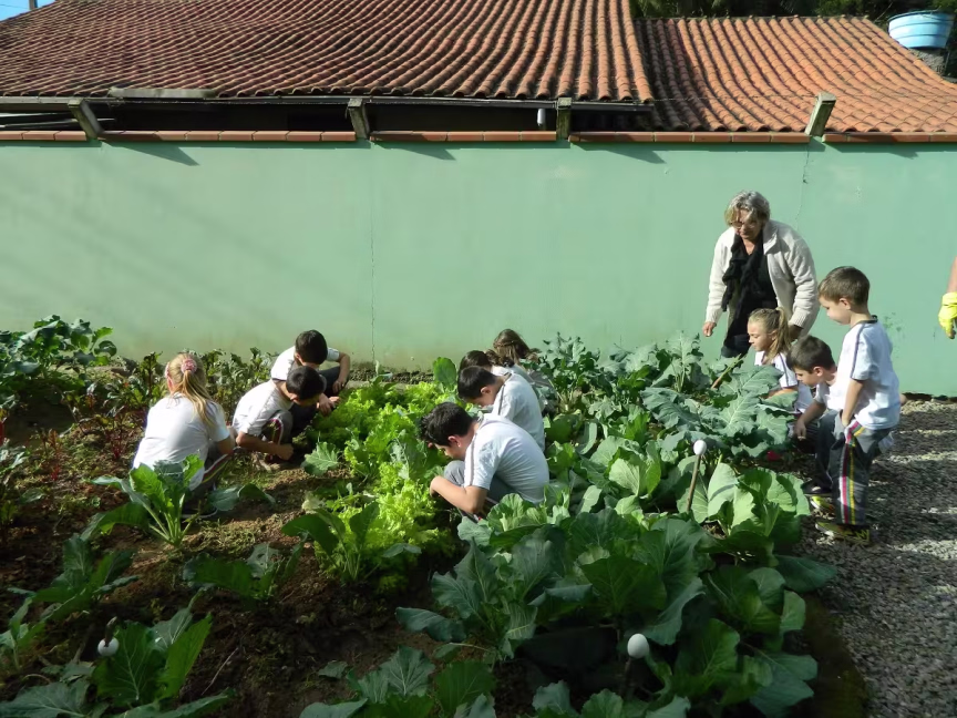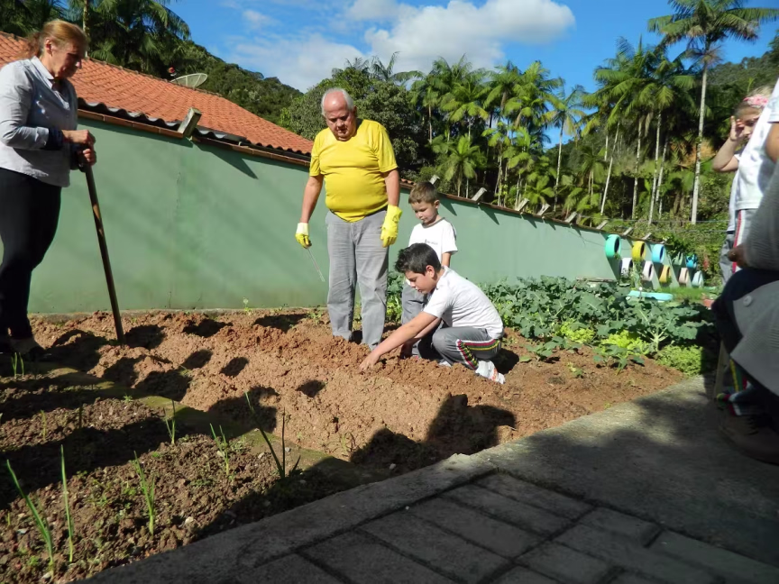 Assim, as crianças aprendem sobre as medidas da plantação em matemática, as cores das plantas em artes, as propriedades e vitaminas do alimento em ciências, o local e tempo certo para plantio em geografia, e finalizam com um relatório completo para a matéria de português.
