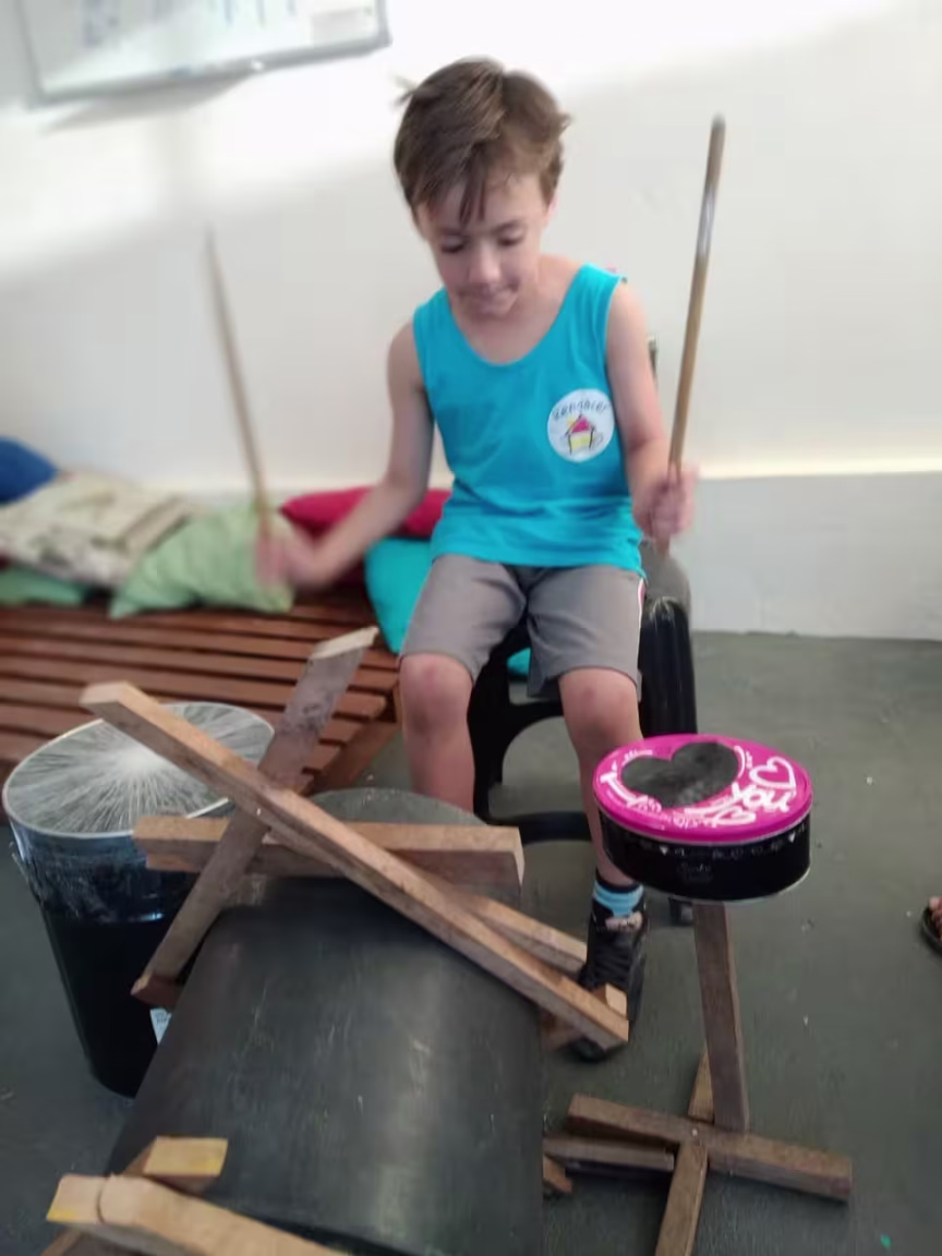 A oficina de robótica também é voltada à prática, tanto que o Renascer tem uma impressora 3D para que os projetos dos alunos saiam do papel e ganhem forma. Trata-se de um diferencial na região disponibilizar um equipamento deste tipo ao alcance de crianças nesta faixa etária. Quem entra na sala de robótica se depara com bonecos de super-heróis e outras formas que foram impressos no moderno aparelho. O material usado para a impressão é feito de bagaço de milho, o que torna as peças biodegradáveis. Mas a robótica também envolve um pouco de marcenaria. Sim, essa arte quase esquecida ganha espaço e vida. Luana explica que são ensinadas noções básicas e até mesmo como se usa uma furadeira, já que o espaço conta com equipamentos com bateria.