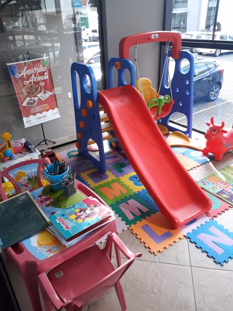 Além do espaço para brincadeiras, Scoz afirma que a pizzaria possui fraldário no banheiro feminino, com as acomodações necessárias, e também uma área reservada que pode ser utilizada para amamentação, mas que nunca foi solicitada pelas clientes.