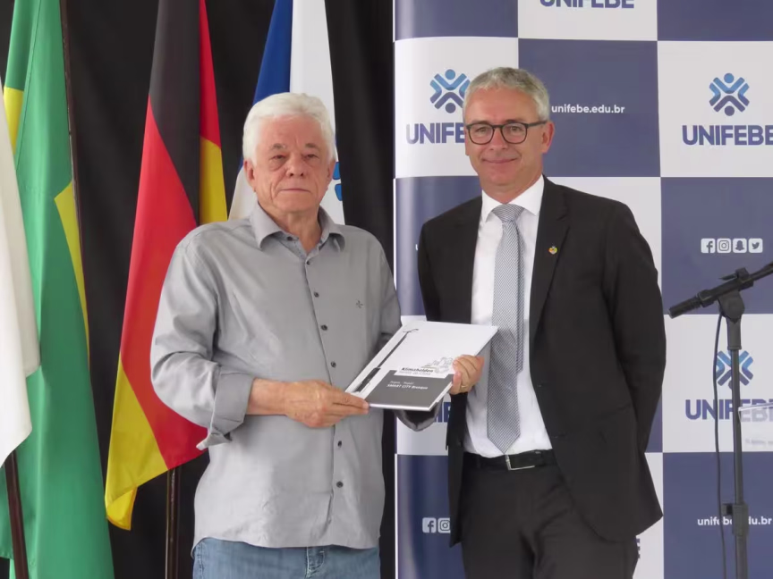 Schnaudigel destacou que “todos sentimos as consequências das mudanças climáticas”. O reitor da Unifebe fez um discurso pautado na tecnologia e no clima.