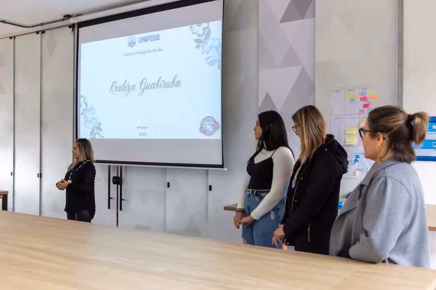 Os desenhos dos vestidos foram apresentados pelas acadêmicas e professoras do curso na última quarta-feira, 4, à reitora da Unifebe, professora Rosemari Glatz, para a pró-reitora de Pós-Graduação, Pesquisa, Extensão e Cultura- Proppex Unifebbe, professora Edineia Pereira da Silva, à segunda dama de Guabiruba, Bruna Zanella, ao filho do prefeito do município, Gustavo Zirke, ao assessor de Cultura, Elivelton Reichert, e ao secretário de Turismo, Indústria, Comércio e Desenvolvimento Econômico, Andrei Muller.