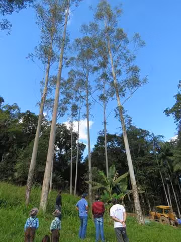 Após analisar, pelo menos, três árvores, o grupo escolheu um eucalipto do tipo vermelho de aproximadamente 25 anos de idade e quase 30 metros, que mais tarde, será podada para ficar em 21 metros.