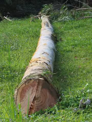 Já com a árvore ao chão, os membros do grupo avaliaram se ela poderia ser usada para a Maibaum. Depois de aprovada, foi feita a medição com uma trena e, em seguida, a poda dos galhos.