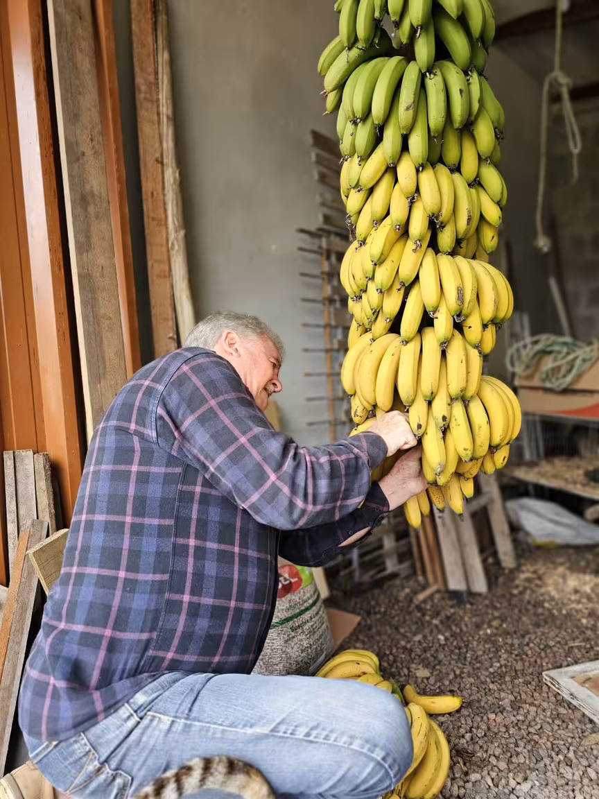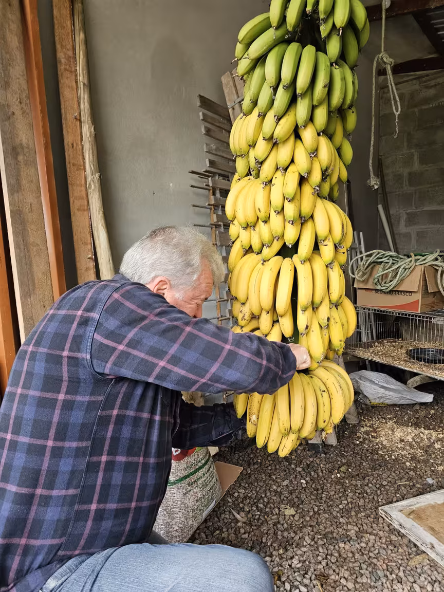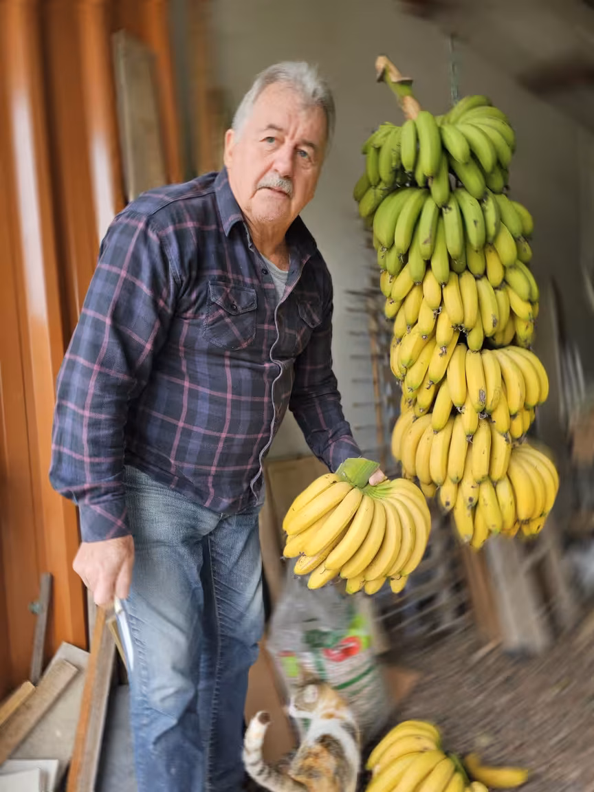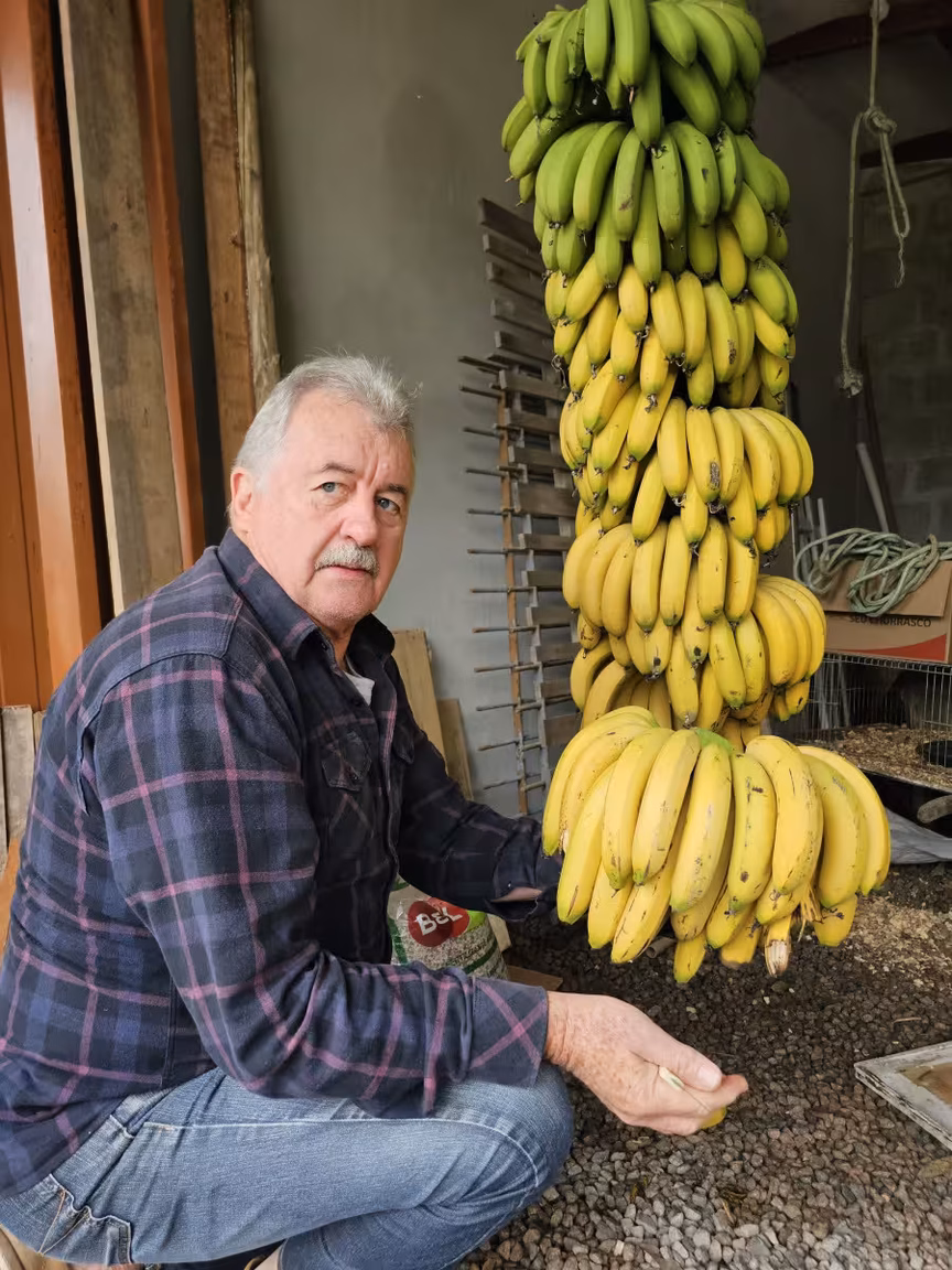 Após esta breve introdução, prosseguimos com a matéria, acompanhada por uma seleção encantadora de imagens que capturam a propriedade de Orides Kormann e seu intrigante envolvimento com as bananas.