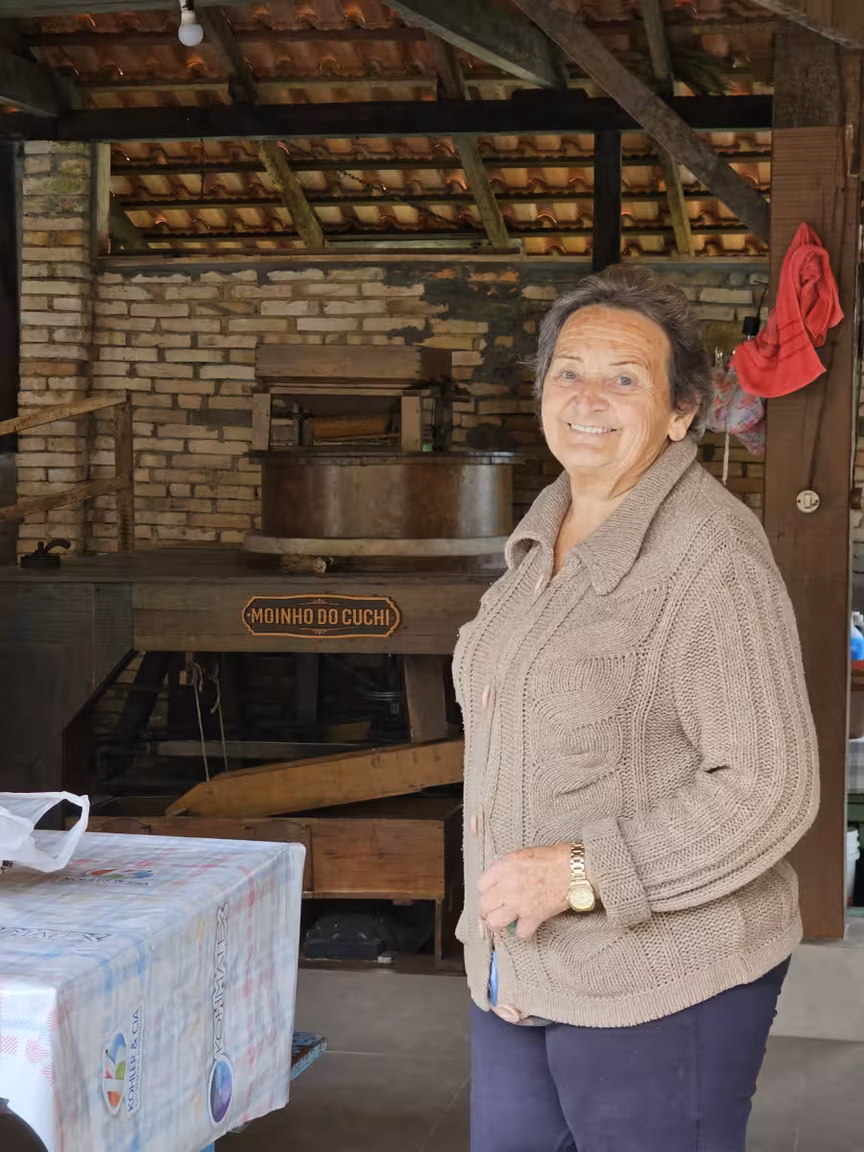 Estamos falando precisamente do moinho da família Cuchi, situado no encantador bairro Planície Alta em Guabiruba. É nesse local que gerações sucessivas têm seguido os passos precisos de seus antepassados, desde o distante ano de 1823 quando o patriarca Jacob Cuchi deu início à produção de fubá e carolo.