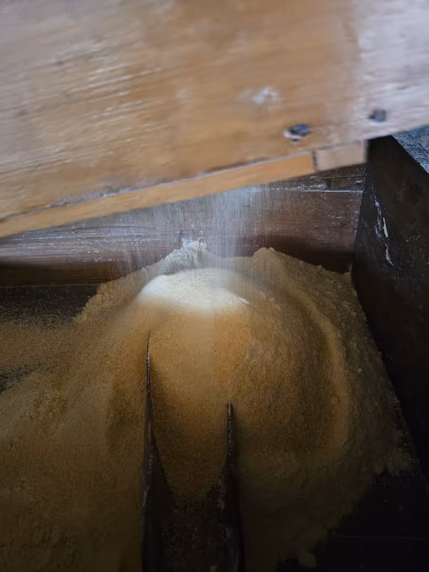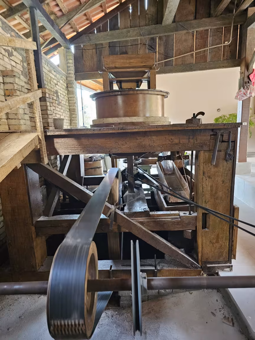 Laerte Cuchi, um dos herdeiros, destaca que o processo de trabalho está na quarta geração, mantendo os costumes de fabricação transmitidos ao longo dos anos. A tafona, como Laerte se refere ao moinho, passou por transformações na estrutura mecânica, mas preservou suas características originais.