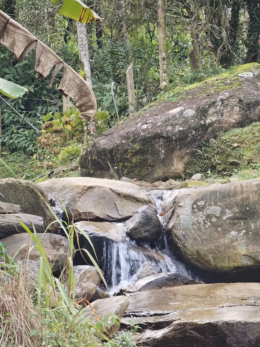 E não poderíamos deixar de mencionar o encantador riacho, adornado por pedras dos mais variados tamanhos, que acrescenta um toque ainda mais charmoso ao local. Um convite irresistível para refrescantes banhos nos dias quentes de verão.