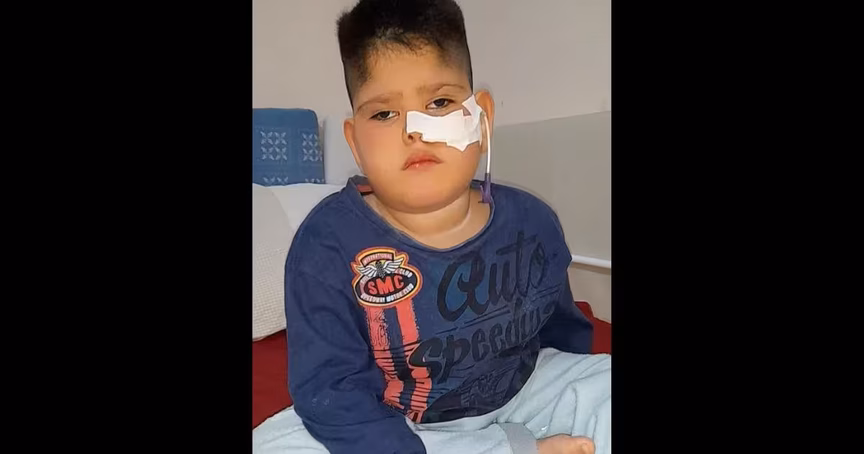 O menino precisou fazer uma traqueostomia de emergência e hoje vive ligado no oxigênio 24 horas por dia, porque não precisa mais respirar por conta própria.