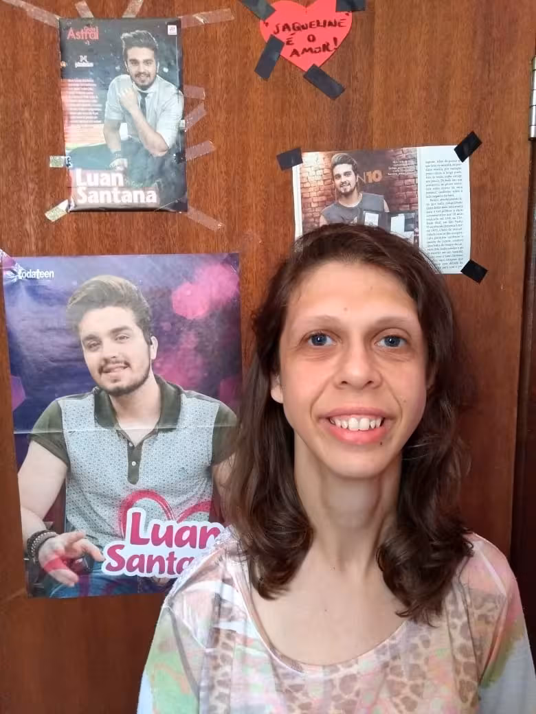Ela conta que é fanática pelo cantor e que, antes de se mudar, tinha o quarto todo decorado com pôsteres e objetos relacionados a Luan. "Acabei perdendo a pastinha onde guardava as coisas que fazia sobre ele. Perdi uma parte de mim, sempre que estava triste, minha motivação era ele."