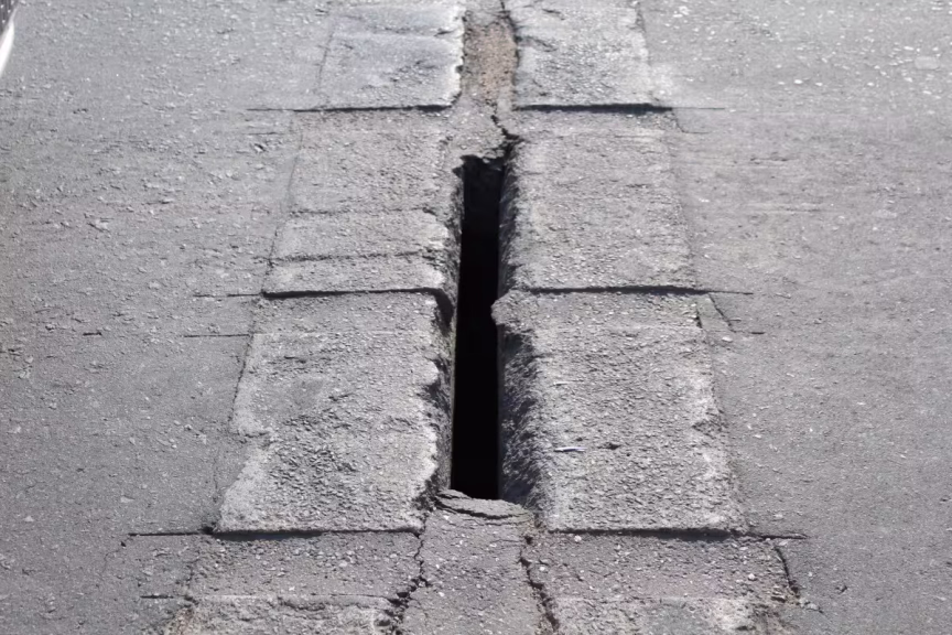 "Ali, temos um problema recorrente, geralmente o asfalto começa a ceder em períodos de muita chuva." Tomaz comenta que já houve até um caso de um cavalo que prendeu a pata em uma das fendas.